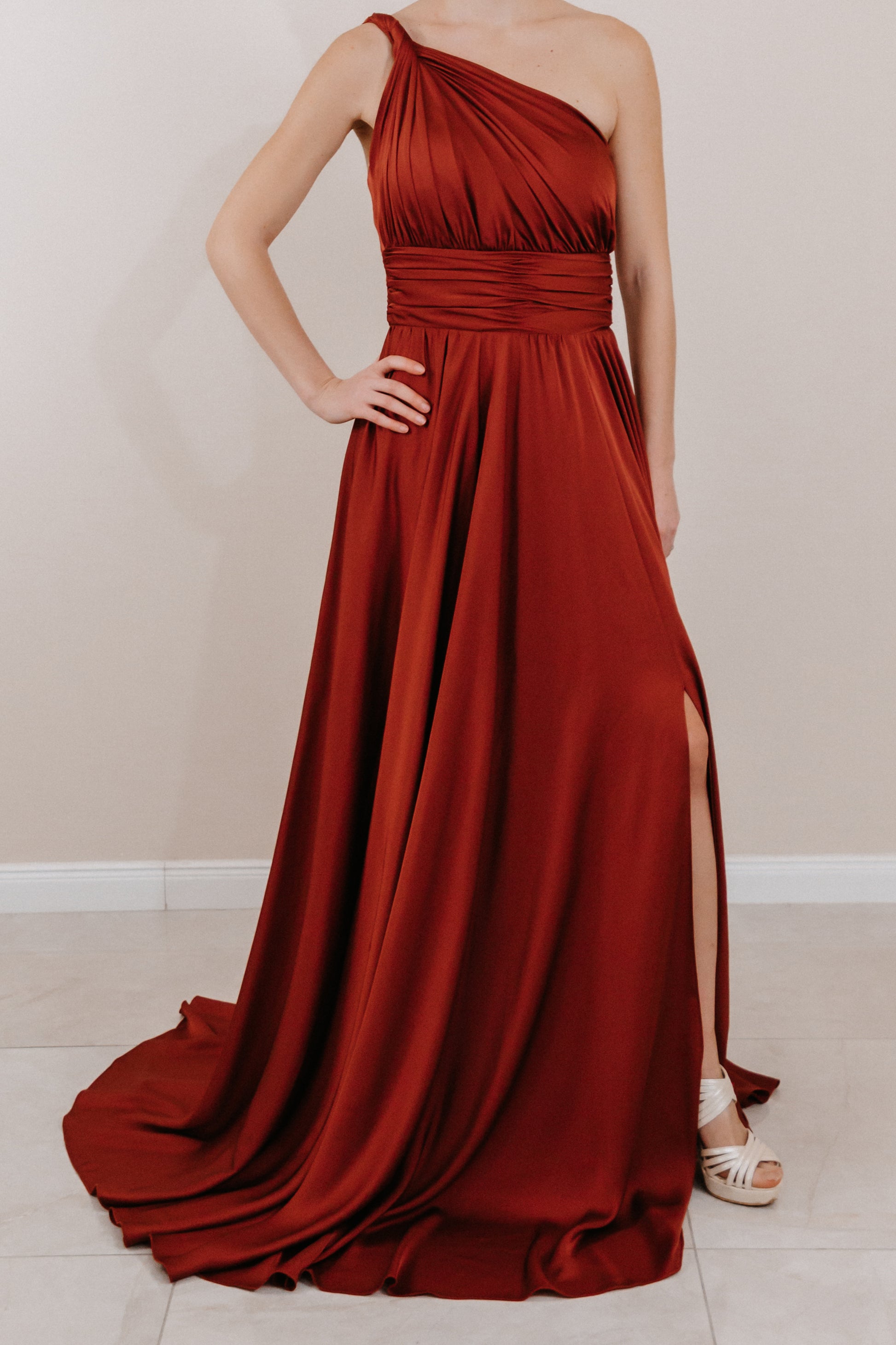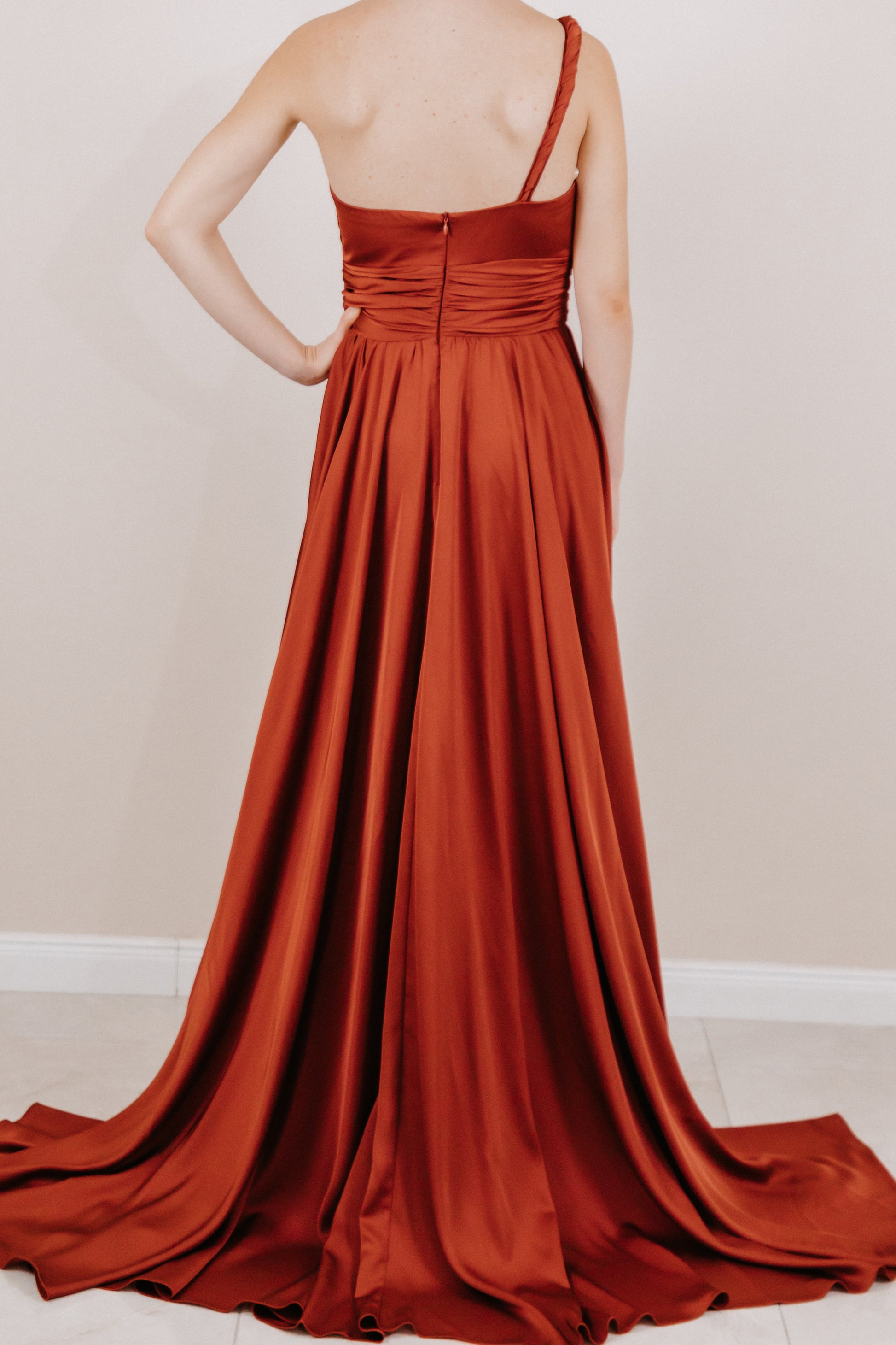 One-Shoulder Abendkleid in edlem Kupferton – Eleganz für besondere Anlässe