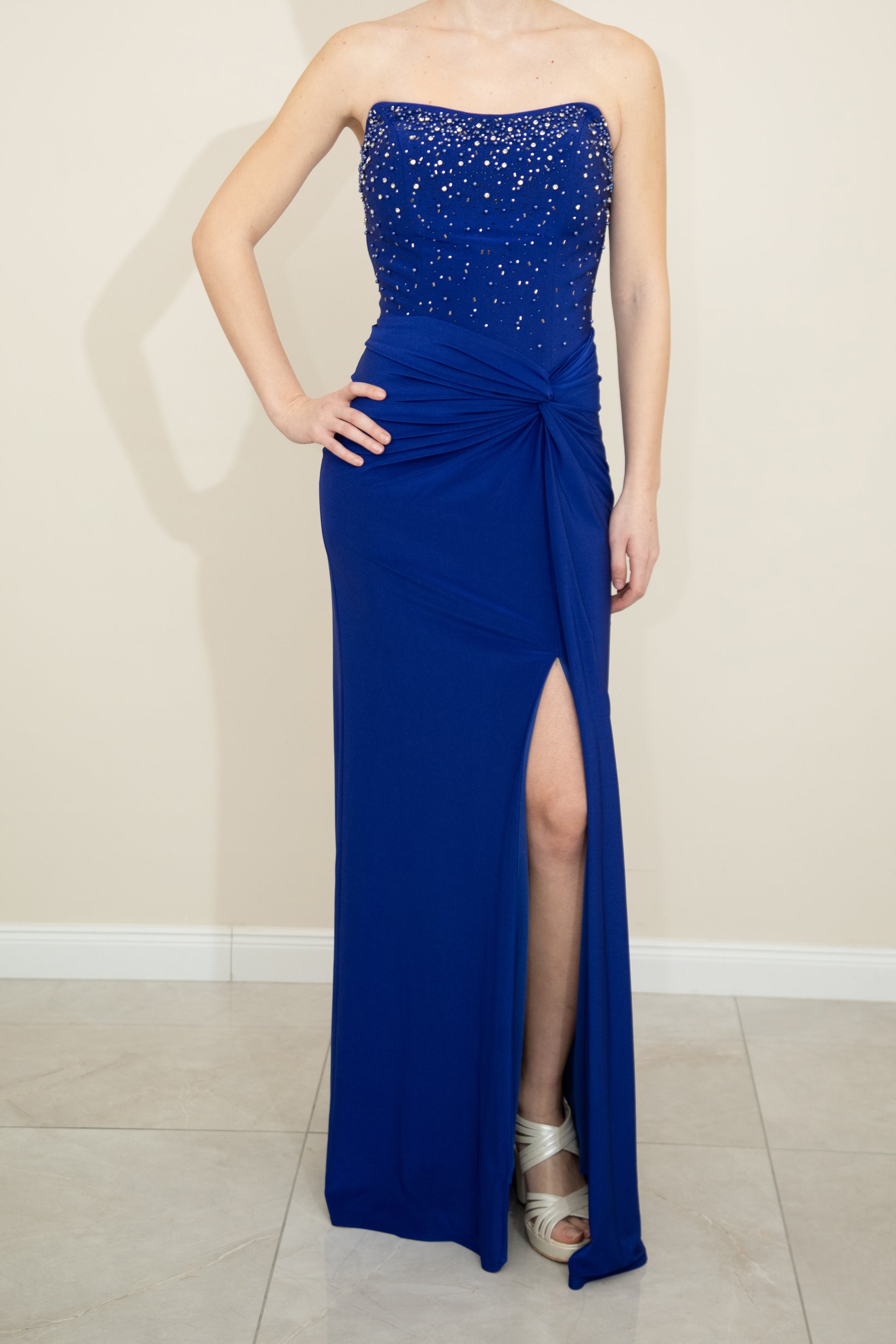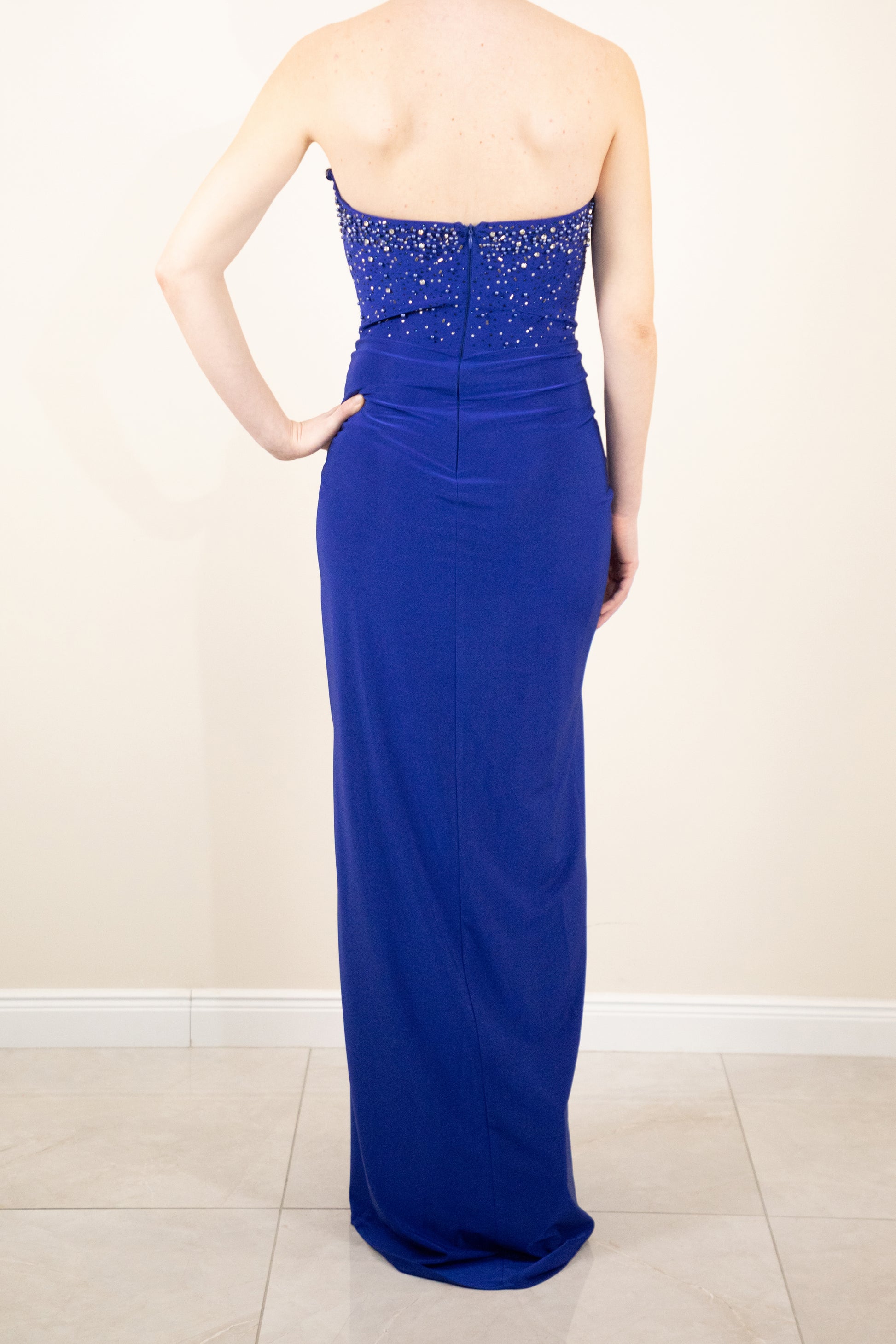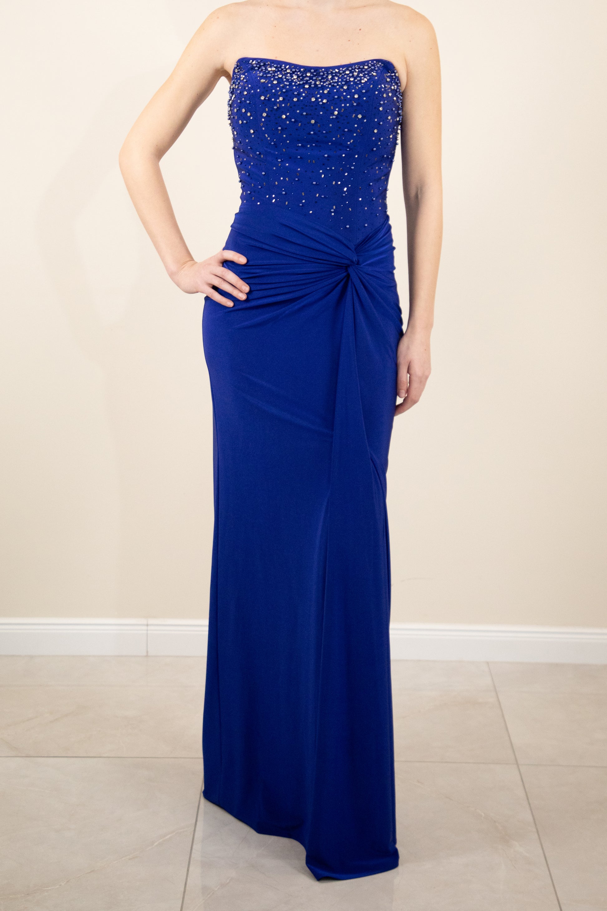 Elegantes Abendkleid in Royalblau mit funkelnden Strasssteinen